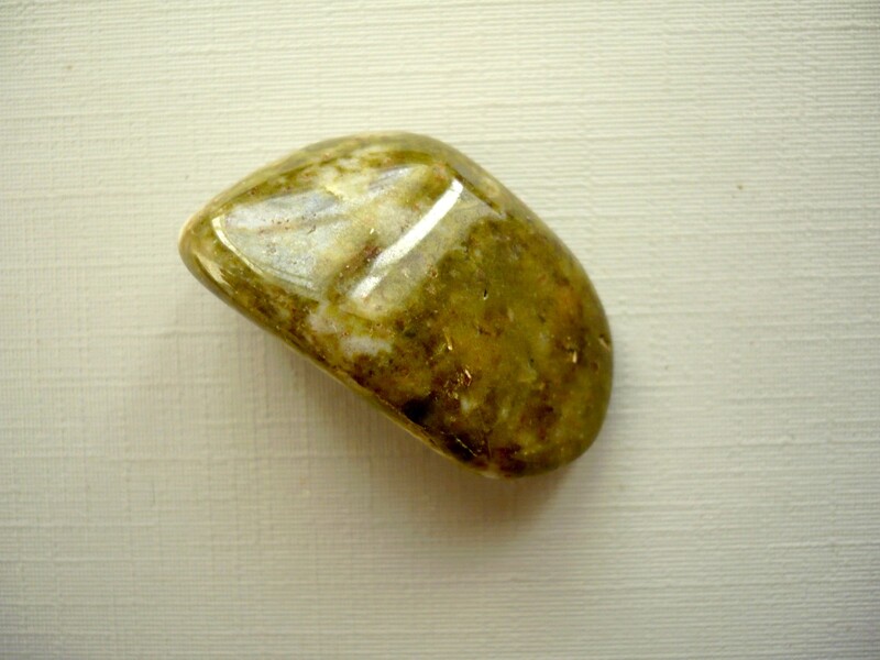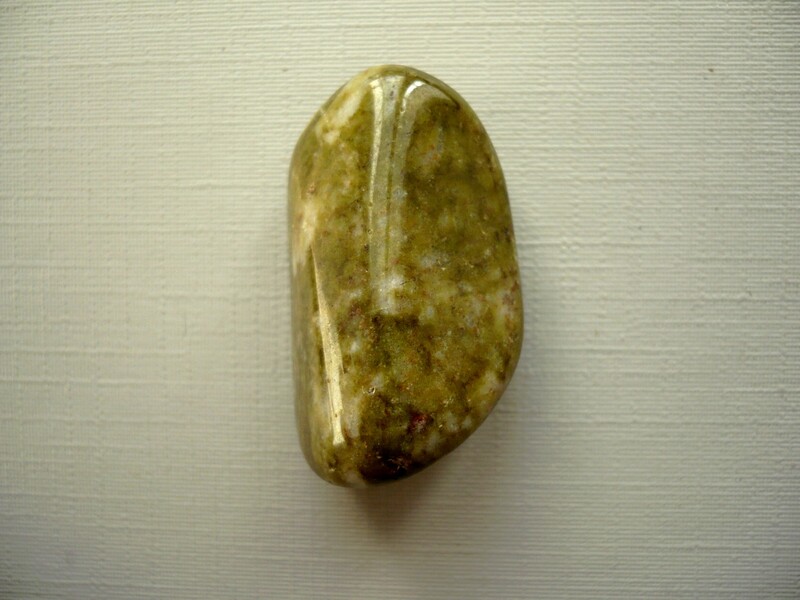 Tromlovaný kámen - epidot. Rozměry 32 x 19 x 13 mm. Je složen z epidotu, živce a křemene. Má moc pěknou sytě zelenou barvu.