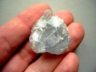 Krystal - celestýn. Původ Madagaskar. Rozměry 27 x 27 x 24 mm. Tento minerál se velmi špatně opracovává a je velmi vzácný. Má modrošedou kouřovou barvu.