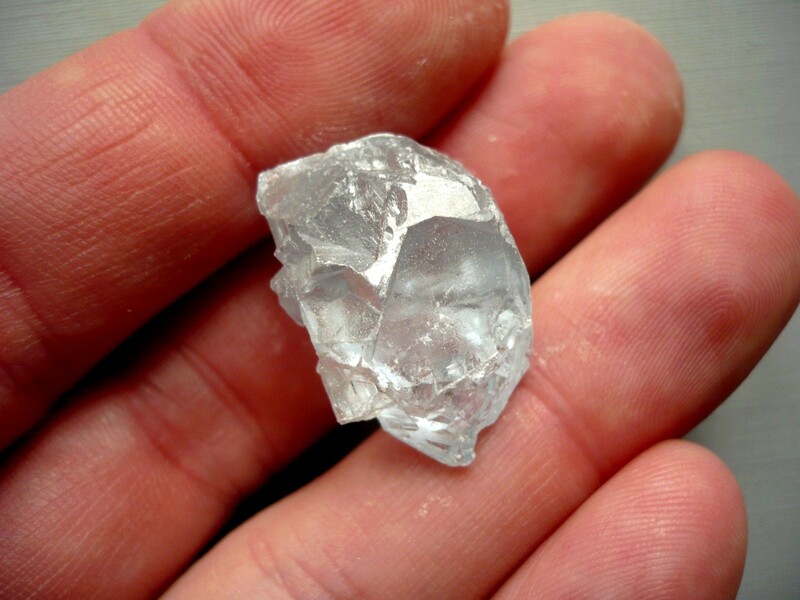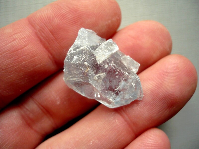 Krystal - celestýn. Původ Madagaskar. Rozměry 25 x 17 x 14 mm. Tento minerál se velmi špatně opracovává a je velmi vzácný. Má modrošedou kouřovou barvu.
