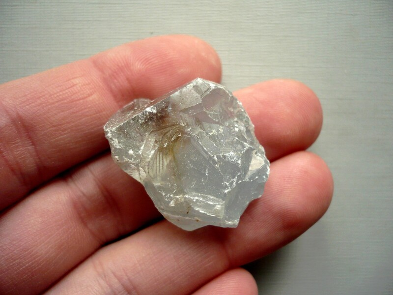 Krystal - celestýn. Původ Madagaskar. Rozměry 28 x 21 x 16 mm. Tento minerál se velmi špatně opracovává a je velmi vzácný. Má modrošedou kouřovou barvu.