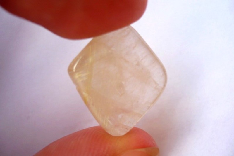 Tromlovaný kámen - sagenit výběrový - rutil v křišťálu. Rozměry 23 x 19 x 7 mm. Říká se mu také "Venušiny vlasy".