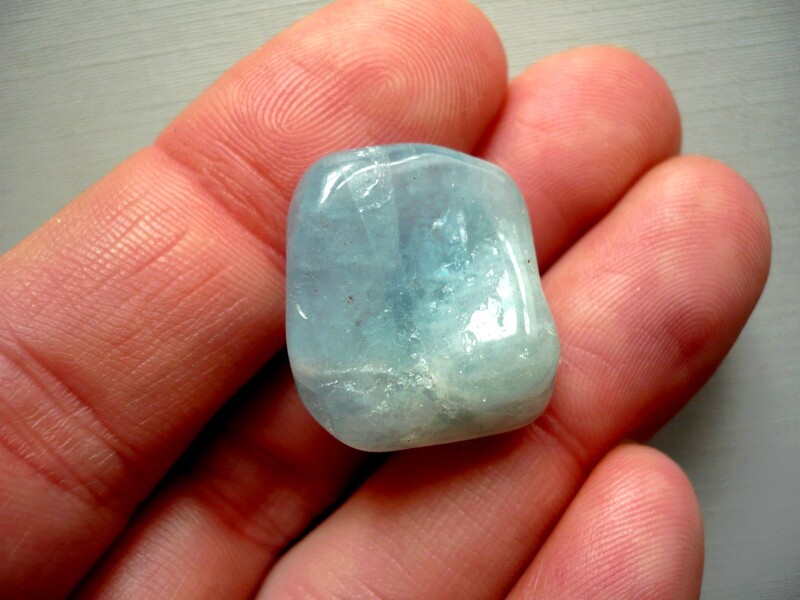 Tromlovaný kámen - výběrový akvamarín AAA kvalita. Rozměry 22 x 19 x 9 mm. Původ Brazílie. Akvamarín - nachází se v odstínech mořské vody, odtud pochází i jeho název. Patří do skupiny drahých kamenů berylů, modrou barvu způsobují železité sloučeniny. Zvyšuje odolnost dýchacích cest, zmírňuje alergie a při přiložení na víčka pomáhá i při bolestech očí. Snižuje bolesti v krku, uklidňuje nás i okolí.