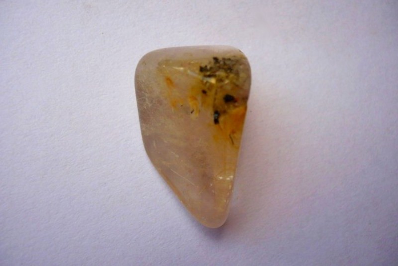Tromlovaný kámen - sagenit výběrový - rutil v křišťálu. Rozměry 24 x 14 x 14 mm. Říká se mu také "Venušiny vlasy".