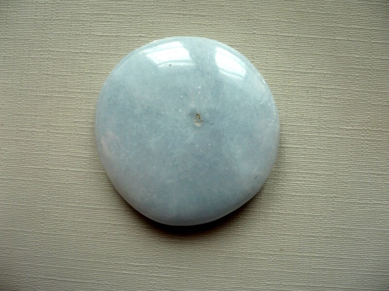 Tromlovaná placka - angelit. Rozměry 38 x 36 x 8 mm. Kupujete vyfocený kousek. Leštěné. Vhodné pro cínování, obšívání.. V nabídce také králky angelitu.