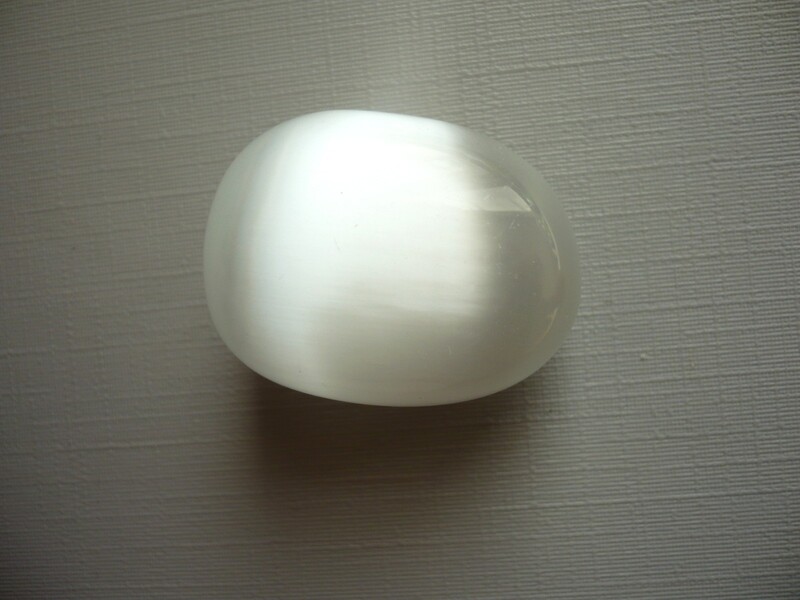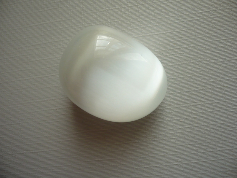 Tromlovaný kámen - kočičí oko (ulexit). Rozměr 29 x 22 x 18 mm. Tento kamínek je syntetický, ale velmi efektní.