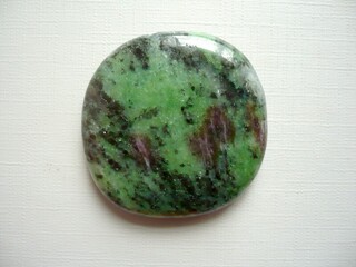 Tromlovaná placka - rubín zoisit. Rozměry 38 x 37 x 7 mm. Kupujete vyfocený kousek. Leštěné. Vhodné pro cínování, obšívání.. Původ Brazílie.