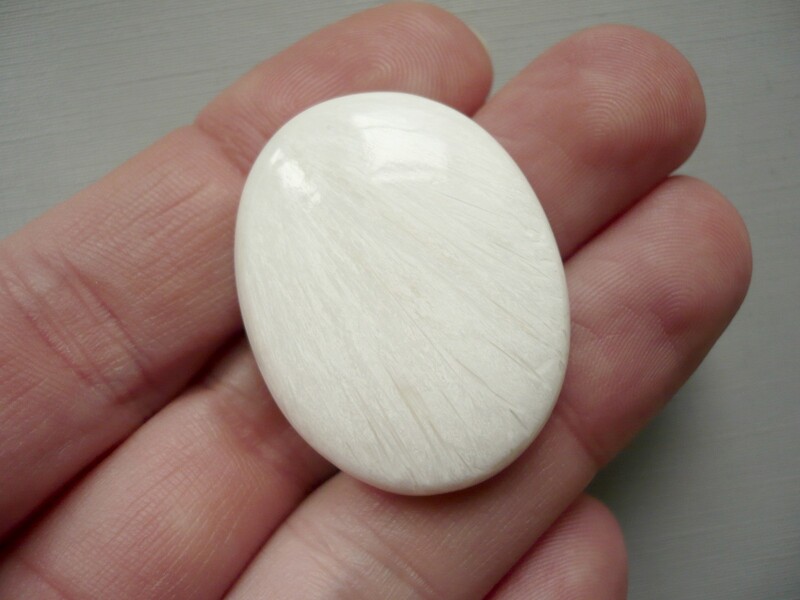 Kabošon - skolecit, top kvalita! Rozměry 35 x 28 x 8 mm. Vhodné pro cínování, obšívání... Kupujete tento konkrétní kus. Patří do skupiny zeolitů, původ Indie (Maharashtra). Tento je bezchybný.