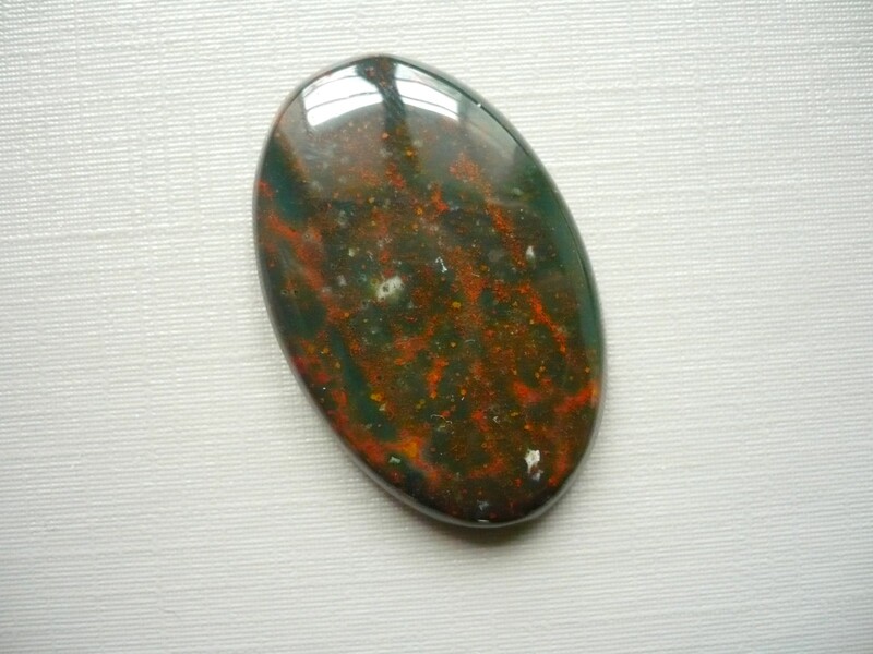 Kabošon heliotrop, top kvalita. Rozměry 35 x 22 x 6 mm. Vhodné pro cínování, obšívání... Ze spodní strany je plochý. Cena za tento konkrétní kus.