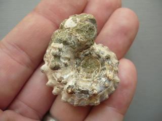 Fosilní amonit Mantelliceras celý (s perletí). Vhodné pro sběratele, pro obšívání, cínování... Zvrchu leštěný, řílá se mu také amonit traktor. Rozměry 41 x 33 x 15 mm. Kupujete vyfocený kousek. Původ Madagaskar. V nabídce mám i páry do náušnic, amonitové půlky, orthoceras, ježovky, žraločí zuby a jiné zkameněliny.