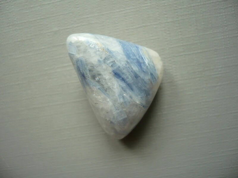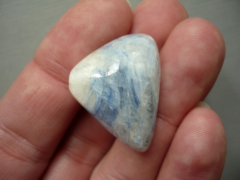 Krásný sbírkový či šperkový valounek - kyanit (disten) v křemeni AAA. Jsou perfektní, výběrové. Rozměry 29 x 21 x 17 mm. Naleziště Brazílie. Vhodný pro cínování, wire-wrapping..