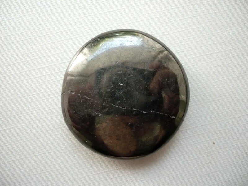 Tromlovaná placka - gagát. Rozměry 41 x 40 x 12 mm. Kupujete vyfocený kousek. Leštěné. Vhodné pro cínování, obšívání.. Tyto kameny jsou lehoučké. Říká se mu černý jantar, je to zkamenělé dřevo. Původ Čína.