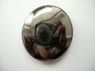 Tromlovaná placka - gagát. Rozměry 43 x 39 x 12 mm. Kupujete vyfocený kousek. Leštěné. Vhodné pro cínování, obšívání.. Tyto kameny jsou lehoučké. Říká se mu černý jantar, je to zkamenělé dřevo. Původ Čína.