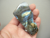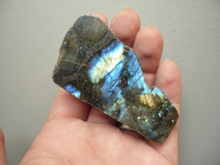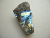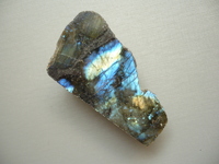 Labradoritový půlbrus, rozměry 74 x 42 x 27 mm. Jde o surovinu, broušenou a vyleštěnou z jedné strany. Vhodné do sbírek, jako dekorace, či k další tvorbě.
