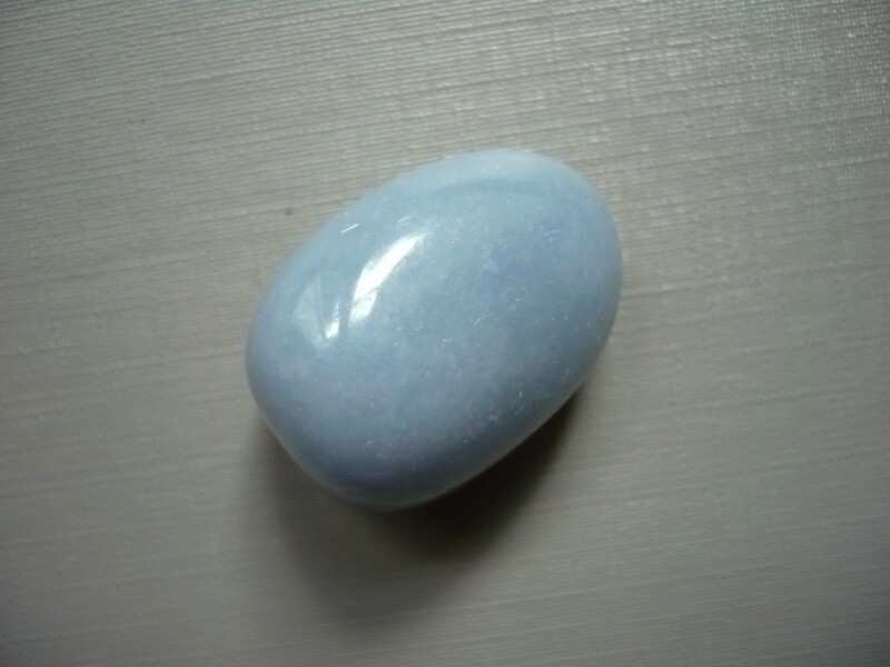 Tromlovaný kámen - angelit. Rozměry 28 x 20 x 20 mm. Kupujete vyfocený kousek. Leštěné. Vhodné pro cínování, wire-wrapping.. V nabídce také korálky a placky angelitu.