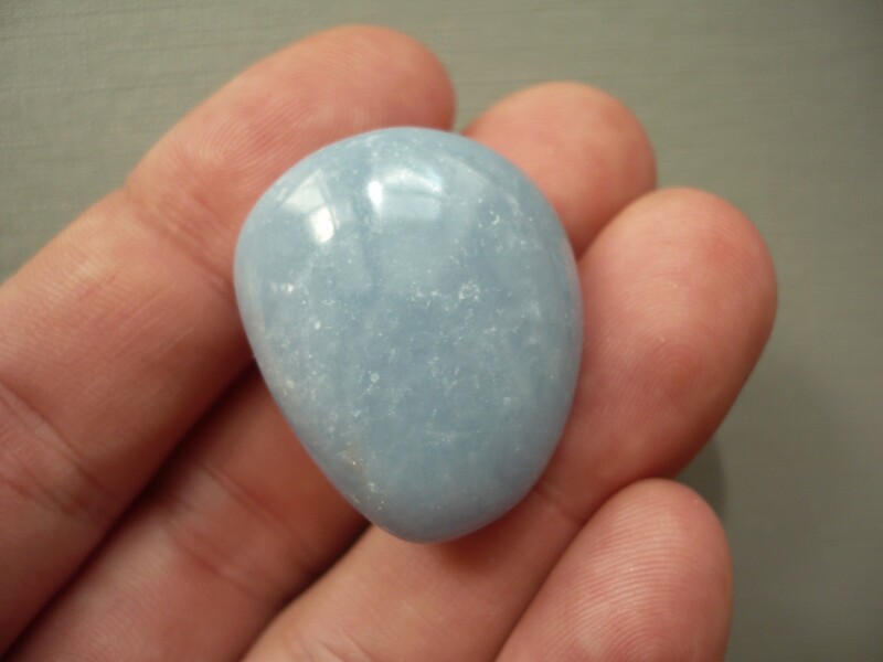 Tromlovaný kámen - angelit. Rozměry 29 x 25 x 20 mm. Kupujete vyfocený kousek. Leštěné. Vhodné pro cínování, wire-wrapping.. V nabídce také korálky a placky angelitu.
