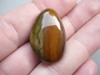 Vrtaný kámen - tygří železo. Rozměr 29 x 19 x 10 mm. Dírka 2 mm průměr.