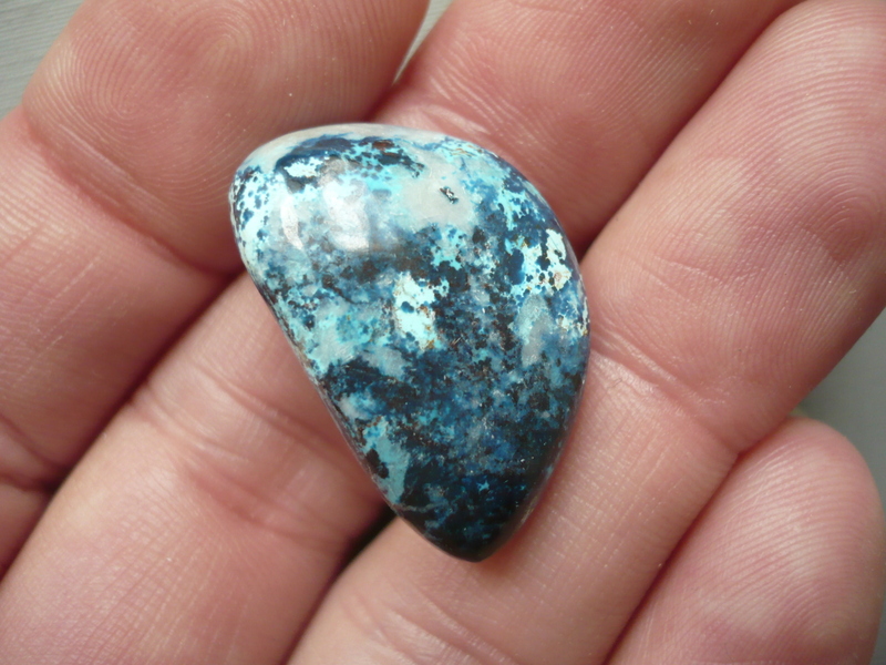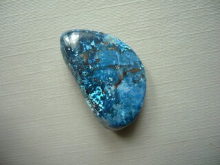 Tromlovaný exkluzivní kámen - shattuckit AAA kvalita. Rozměry 27 x 17 x 10 mm. Jsou výběrové, sbírkové či šperkové. Původ Namíbie. Shattuckit - je minerál vznikající sekundárním zvětráváním mědi. Kámen má sytou tyrkysovou barvu v několika odstínech, hnědé části jsou pozůstatky měďné rudy.