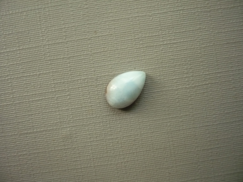 Kabošon - larimar. Rozměry 9 x 6 x 3 mm. Naleziště Dominikánská republika. Patří do skupiny pektolitů, mají krásné modré zbarvení připomínající moře.