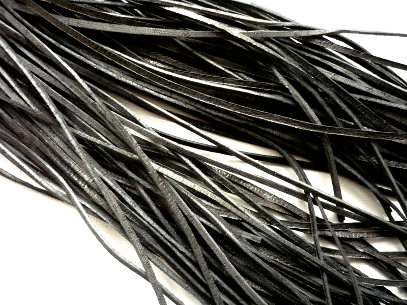 Kožený řemínek v černé barvě. Vhodný k zavěšení donutů či medailonků.. Délka 92 cm, síla 2 mm. Cena za kus.