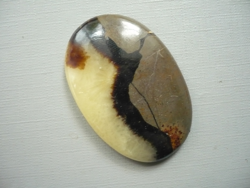 Velký kabošon septárie. Rozměry 44 x 30 x 7 mm. Vhodné pro cínování, obšívání... Septárie je známá jako Dračí kámen, původ Madagaskar. Kupujete tento konkrétní kus. Jde o přírodní kámen, není dobarvován.