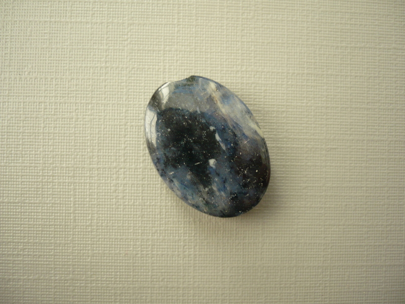 Vrtaný korálek - dumortierit. Rozměry 18 x 13 x 6 mm. V nabídce jsou ještě troml. kameny a placky, korálky..