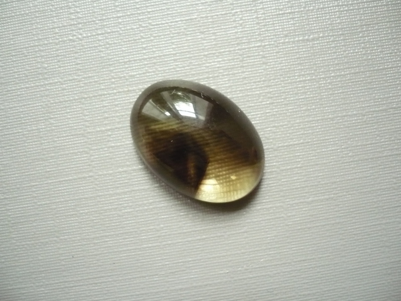 Kabošon - prasiolit, rozměry 19 x 14 x 7 mm. Původ Polsko. Tento minerál má zabarvení do zelena díky vyššímu obsahu stopových prvků - hliníku a železa. Říká se mu zelený ametyst. Tyto jsou pravděpodobně tepelně upravené.