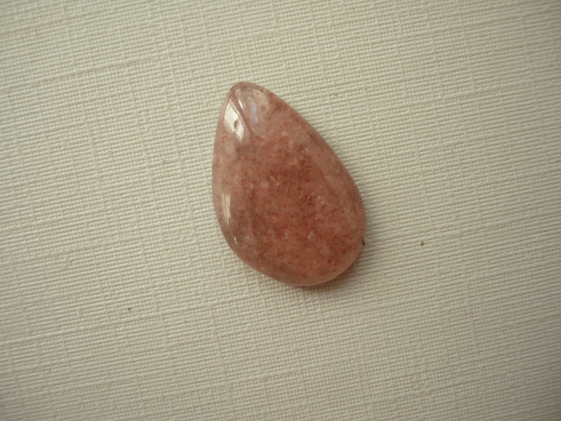 Kabošon - jahodový křemen. Rozměry 19 x 13 x 4 mm. Přírodní kámen se šupinkami příměsí, hematitu.. Vhodné pro cínování, obšívání... Původ Afrika.