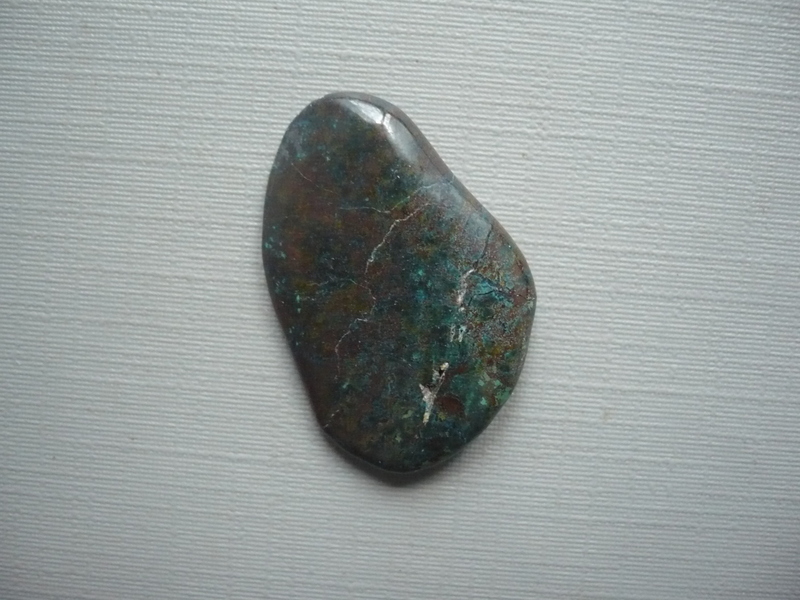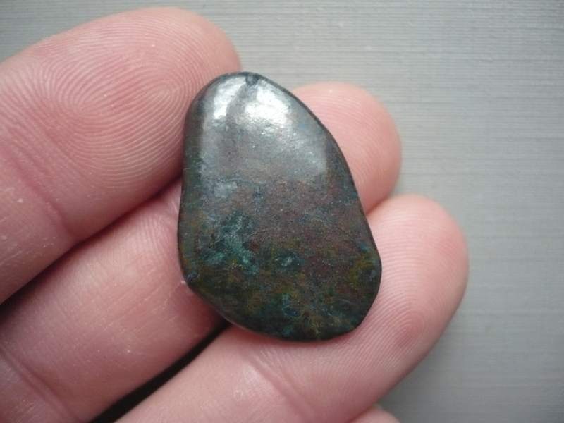 Tromlovaný kámen - shattuckit. Rozměry 28 x 19 x 5 mm.