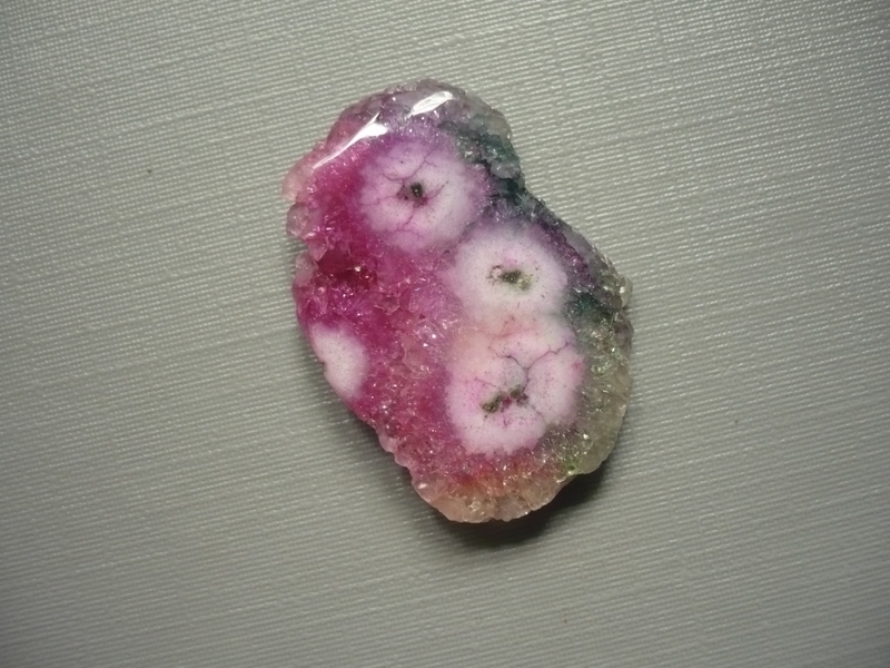 Plátek křišťálové růže. Rozměry 30 x 21 x 5 mm. Je maličko vypouklá, leštěná, výborné kvality. Tyto jsou dobarovované. Křišťálová růže - je vlastně jádro, které obepínají krystaly křišťálu.