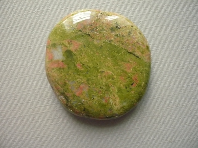 Tromlovaná placka - unakit. Rozměry 44 x 43 x 10 mm. Původ JAR. Kupujete vyfocený kousek. Leštěné. Vhodné pro cínování, obšívání.. V nabídce ještě vrtané kameny, korálky, zlomky..