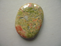 Tromlovaná placka - unakit. Rozměry 45 x 34 x 10 mm. Původ JAR. Kupujete vyfocený kousek. Leštěné. Vhodné pro cínování, obšívání.. V nabídce ještě vrtané kameny, korálky, zlomky..