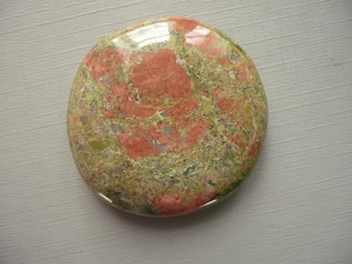 Tromlovaná placka - unakit. Rozměry 44 x 43 x 10 mm. Původ JAR. Kupujete vyfocený kousek. Leštěné. Vhodné pro cínování, obšívání.. V nabídce ještě vrtané kameny, korálky, zlomky..