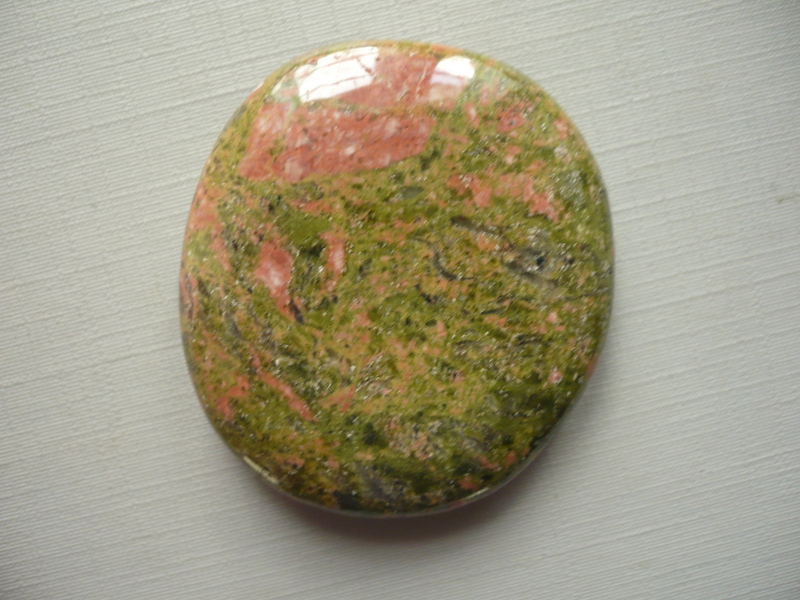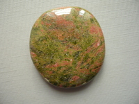 Tromlovaná placka - unakit. Rozměry 45 x 41 x 10 mm. Původ JAR. Kupujete vyfocený kousek. Leštěné. Vhodné pro cínování, obšívání.. V nabídce ještě vrtané kameny, korálky, zlomky..