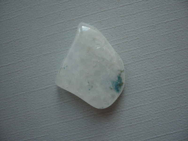 Tromlovaný kámen - aqualite (apatit v křemeni). Rozměry 19 x 19 x 5 mm. Původ Jižní Afrika.