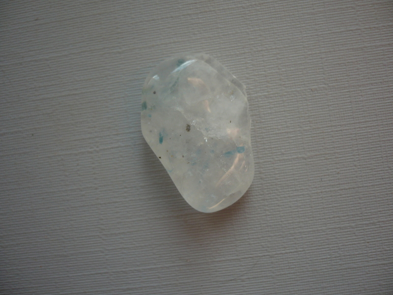 Tromlovaný kámen - aqualite (apatit v křemeni). Rozměry 23 x 16 x 6 mm. Původ Jižní Afrika.