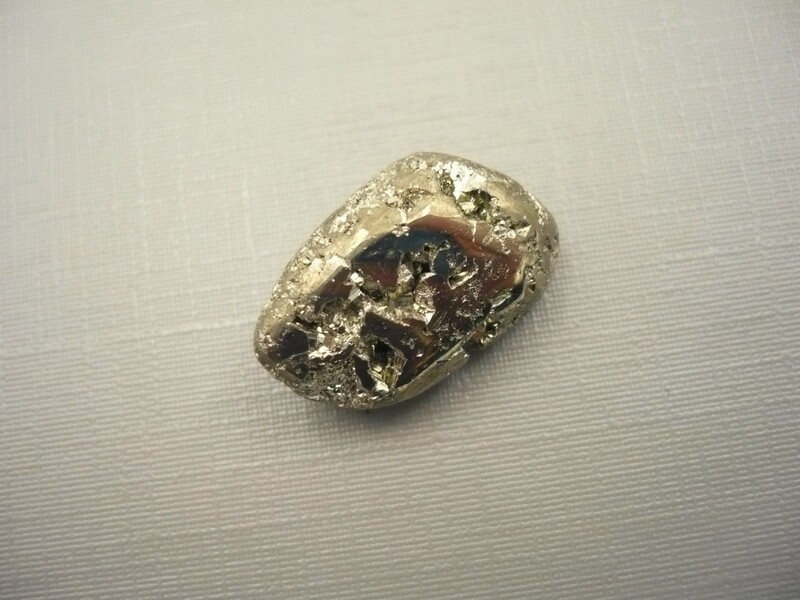Tromlovaný kámen - pyrit. Rozměry 21 x 13 x 8 mm. Vhodné pro cínování, obšívání... Jsou moc pěkné. Původ Peru.