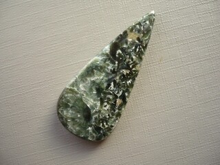 Luxusní kabošon serafinitu. Rozměry 43 x 19 x 5 mm. Původ Rusko. Vhodné pro cínování, obšívání... Ze spodní strany je plochý.