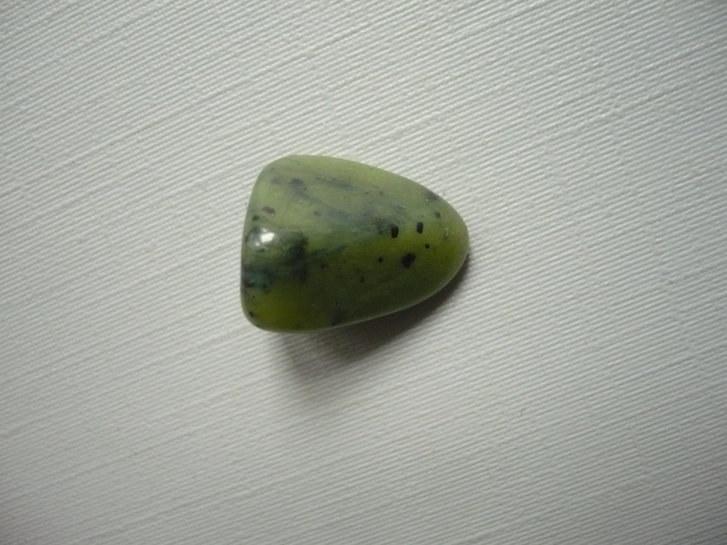 Tromlovaný kámen - jadeit/nefrit kanadský. Rozměry 15 x 12 x 9 mm. Země původu - Kanada.
