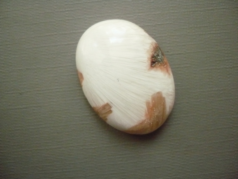 Kabošon - skolecit, top kvalita! Rozměry 29 x 22 x 8 mm. Vhodné pro cínování, obšívání... Cena za tento konkrétní kus. Patří do skupiny zeolitů, původ Indie (Maharashtra).