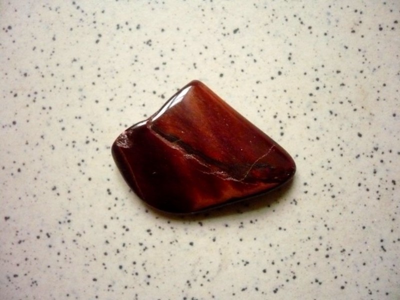 Tromlovaný kámen - býčí oko . Rozměry 18 x 17 x 4 mm. Původ JAR.