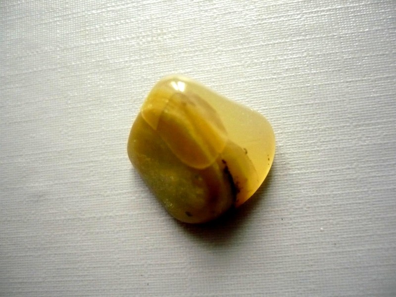 Tromlovaný kámen - žlutý opál. Rozměry 18 x 16 x 13 mm. Původ Tanzánie. V nabídce také zlomky žlutého opálu.