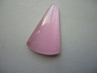 Kabošon - kočičí oko (ulexit). Rozměr 30 x 21 x 7 mm. Tento kabošon je vlastně sklo, ale velmi efektní. Uvnitř jsou paralelně uspořádané šestiboké kanálky optických vláken, v růžové variantě je velmi něžný.