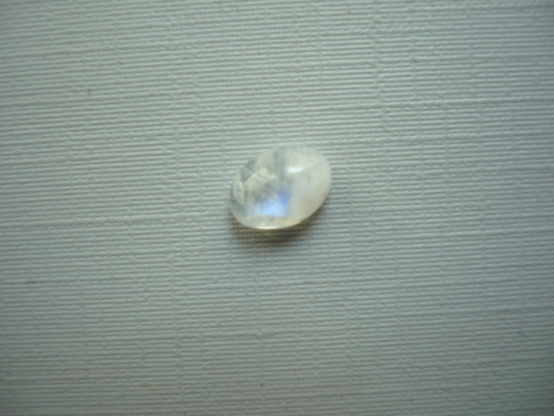 Kabošon měsíčního kamene. Rozměry 8 x 6 x 3 mm. Vhodné pro cínování, obšívání... Ze spodní strany je plochý. Kupujete tento konkrétní kus. Původ Indie.