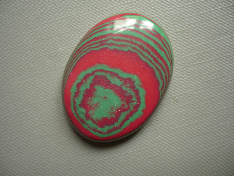 Kabošon - fordit. Rozměry 35 x 26 x 7 mm. Vhodné pro cínování, obšívání... Původ USA. Cena za tento konkrétní kus. Jsou opravdu tak krásně a jasně barevné jako na fotu. Fordit (detroitský achát) - někdy je zaměňován s calsilicou, která je původem z Mexika. Fordit je vlastně uměle vytvořený pevný a odolný šperkový kámen, v poslední době velmi oblíbený. Jedná se vlastně o vrstvy autolaku z automobilek Ford po stříkání karoserií aut. Nosí v sobě kousek historie, pro jeho vznik muselo automobilkou projít několik desítek automobilů. Šikovné lidské ruce brzy napadlo toto vybrousit, vznikají tak překrásné tvary do šperků. Fordit lze bez problému ocínovat.