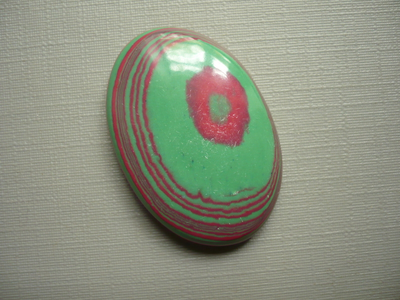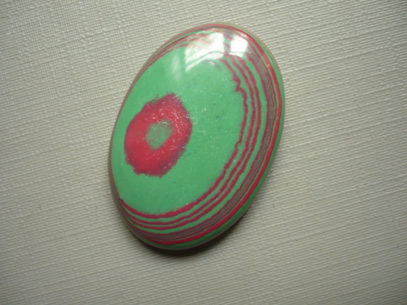 Kabošon - fordit. Rozměry 33 x 22 x 6 mm. Vhodné pro cínování, obšívání... Původ USA. Cena za tento konkrétní kus. Jsou opravdu tak krásně a jasně barevné jako na fotu. Fordit (detroitský achát) - někdy je zaměňován s calsilicou, která je původem z Mexika. Fordit je vlastně uměle vytvořený pevný a odolný šperkový kámen, v poslední době velmi oblíbený. Jedná se vlastně o vrstvy autolaku z automobilek Ford po stříkání karoserií aut. Nosí v sobě kousek historie, pro jeho vznik muselo automobilkou projít několik desítek automobilů. Šikovné lidské ruce brzy napadlo toto vybrousit, vznikají tak překrásné tvary do šperků. Fordit lze bez problému ocínovat.