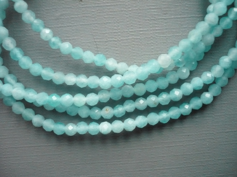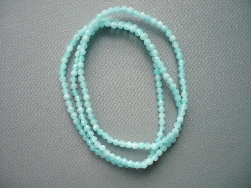 Vrtané korálky - amazonit v AA kvalitě, jsou fasetované, moc pěkné, průměr korálků 4 mm. Cena je za celý náramek na pružence, obvod je cca 17 cm. Vhodné jako dárek, či pro další tvoření.