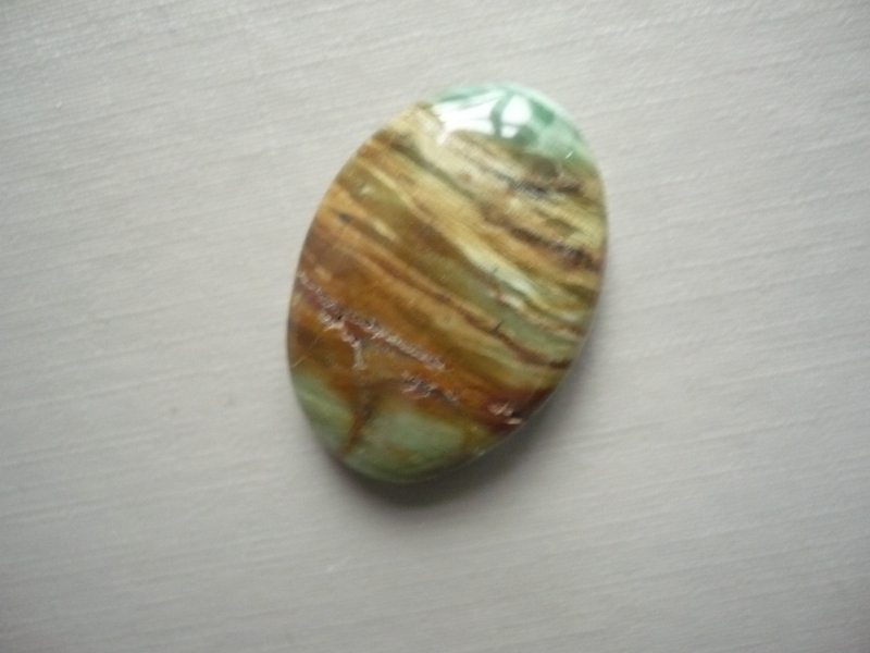 Kabošon - prasem (africký jadeit). Rozměry 25 x 18 x 7 mm. Vhodný pro cínování, wire-wrapping.. Původ Jižní Afrika.