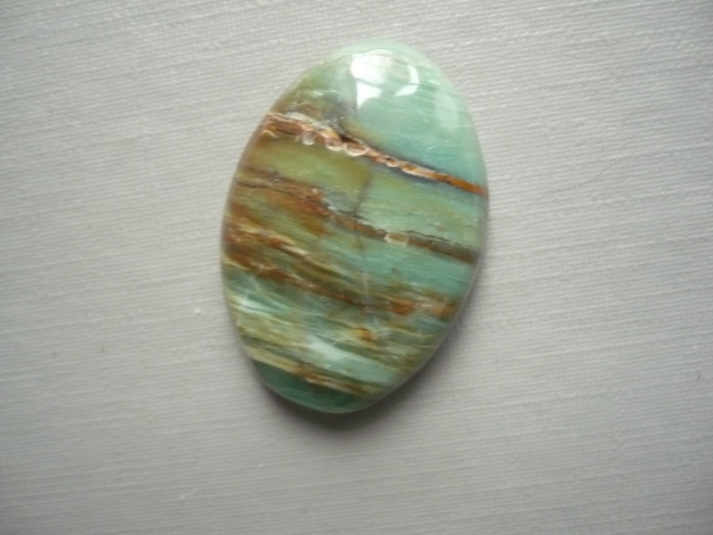 Kabošon - prasem (africký jadeit). Rozměry 26 x 18 x 6 mm. Vhodný pro cínování, wire-wrapping.. Původ Jižní Afrika.