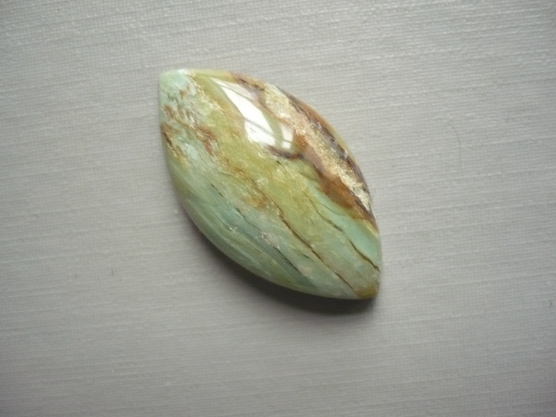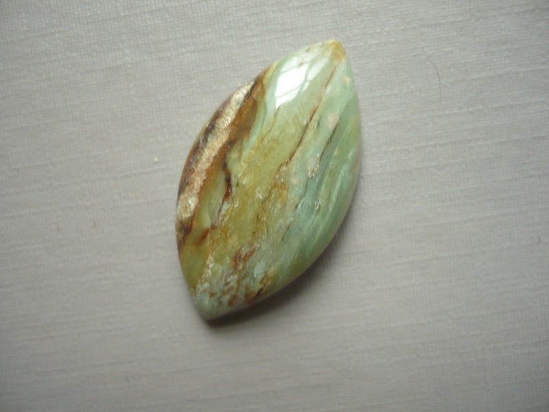 Kabošon - prasem (africký jadeit). Rozměry 29 x 16 x 7 mm. Vhodný pro cínování, wire-wrapping.. Původ Jižní Afrika.