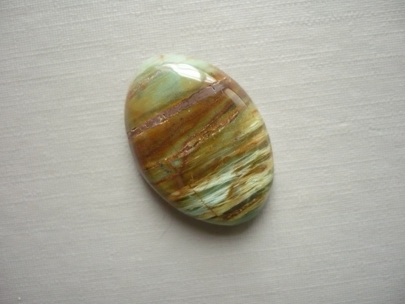 Kabošon - prasem (africký jadeit). Rozměry 26 x 18 x 7 mm. Vhodný pro cínování, wire-wrapping.. Původ Jižní Afrika.